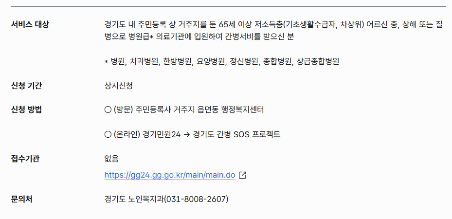 - 경기도 간병 SOS 프로젝트란?